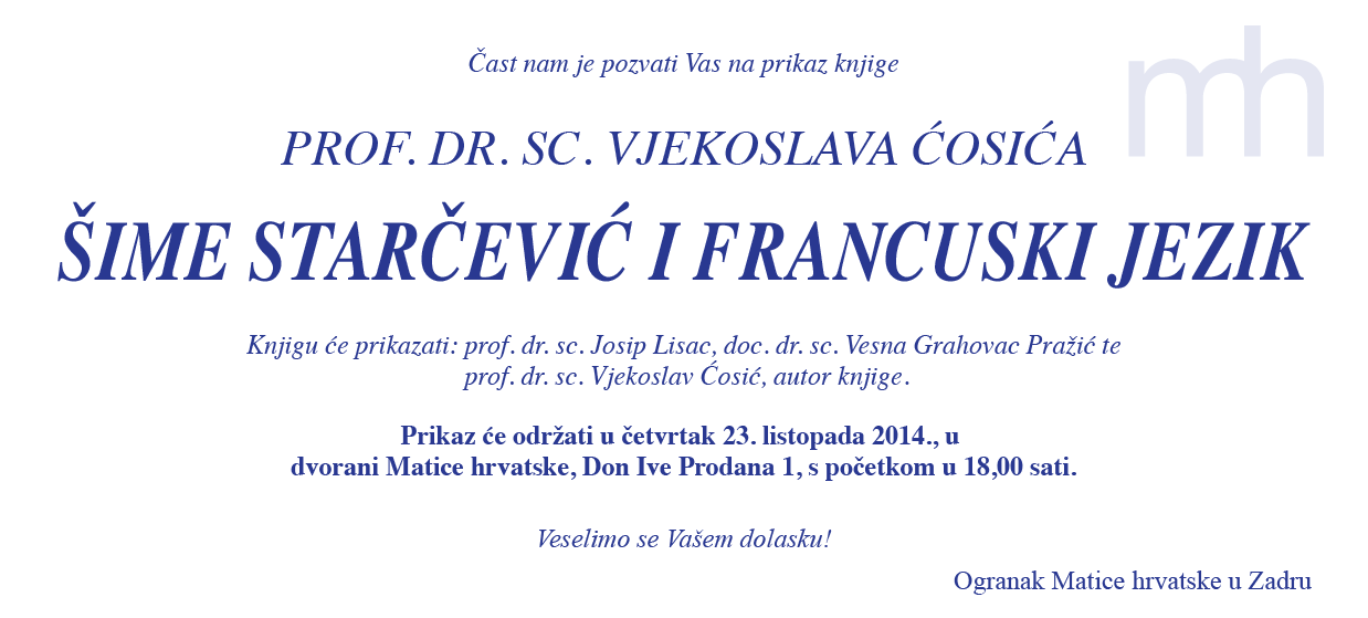 U srijedu 11. lipnja 2014. godine održana je Izborna skupština Ogranka Matice hrvatske u Zadru.